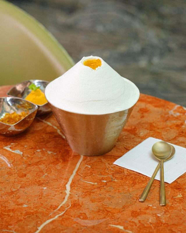Try our Hallabong bingsu, a harmonious meeting of snowy, melt-in-your-mouth Mascarpone cream and Jeju's hallabong orange. Feel the coolness of Mascarpone and the sweet flesh of a hallabong orange from the snow-covered Hallasan Mountain. For an even stronger experience of the sweet, fragrant taste of Jeju, we recommend you mix the jelly and Hallabong extract toppings together.