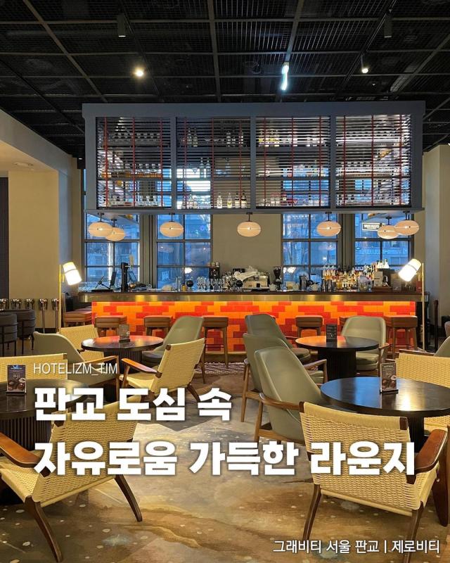 바쁨 가득한 판교 도심 속 복잡하고 힘든 머릿속을 식힐만한 탈출구 같은 곳은 어디가 있을까 생각하곤 했던 나. 판교역 인근 호텔. 프리미엄 라이프스타일호텔 '그래비티 판교' 이번에 호캉스를 하며 판교 도심 속 안식처 같은 라운지를 하나 발견하였다. 이름은 '제로비티'