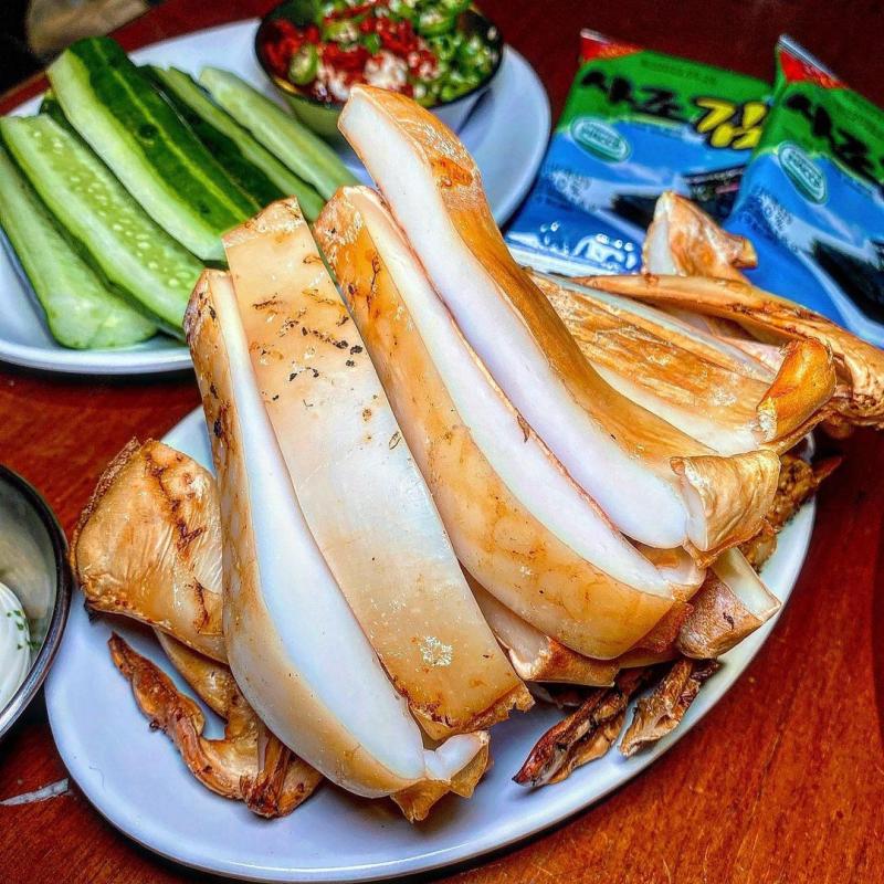 황금빛 금괴가 떠오르는 뚠뚠한 반건조 갑오징어 구이.