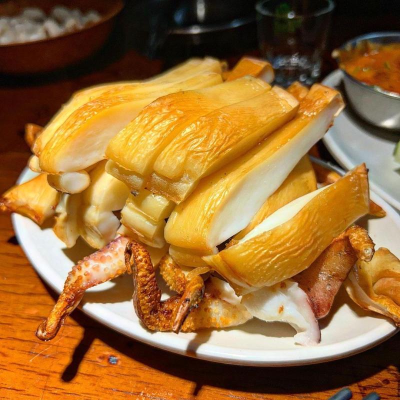 건어물 안주중에 최고로 치는 갑오징어 수북히 쌓인 비주얼부터 심쿵. 자칫 질기거나 뻣뻣할 수 있는데 이곳은 겉바속촉의 정석이네요. 황금빛 노릇한 겉면은 바삭하고 뚱뚱한 속살은 촉촉 쫀득 탱글합니다. 갑오징어 자체의 구수한 단맛도 좋은데 이곳만의 특제소스가 일품. 매콤 달콤 짭잘 고소한 다채로운 맛이 어우러져 있어여. 맥주 소주 주종 상관 없고 배불러도 쉴새없이 손이 가는 맛.❤️