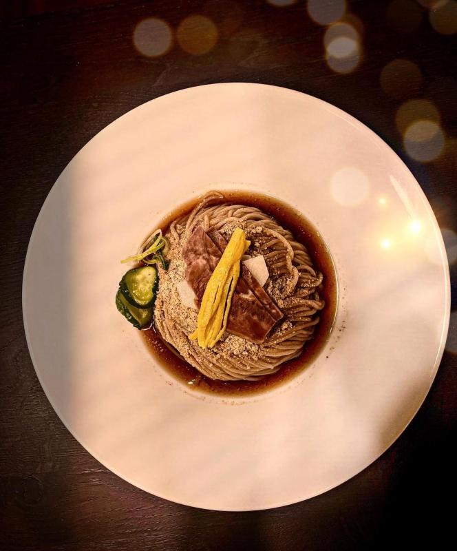 자가제면 메밀면으로 면발이 좋고 메밀향이 좋습니다 거기에 담백하고 슴슴 짭짤한 평냉 같은 육수가 부드럽고 시원합니다