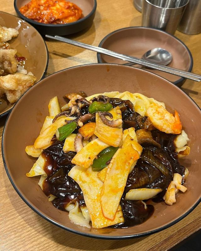 윤기 좔좔 흐르는 짜장도삭면이다. 짜장소스와 도삭면이 이렇게나 잘 어울릴 수 있다니. 이 킹정 조합을 먹어보고서야 알았다.