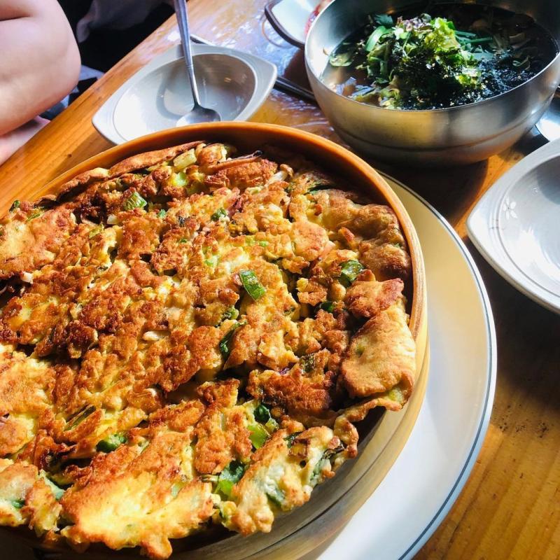 Korean style seafood pancake😁 I know it sounds yucky but once you try it, you’ll love it😊