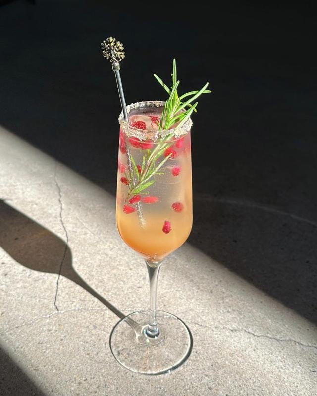 한 번 더, 산타모니카의 컨셉을 설명 드리자면 나무를 표현한 로즈마리, 오너먼트로 표현한 석류, 하얗게 눈내림을 표현한 립의 설탕, 트리 맨 위의 별을 표현한 머들러까지. 보는 맛도 하나의 맛임을 강조합니다. 음료 한 잔으로 크리스마스를 기다리는 한 달의 설렘을 선사하고자 합니다.