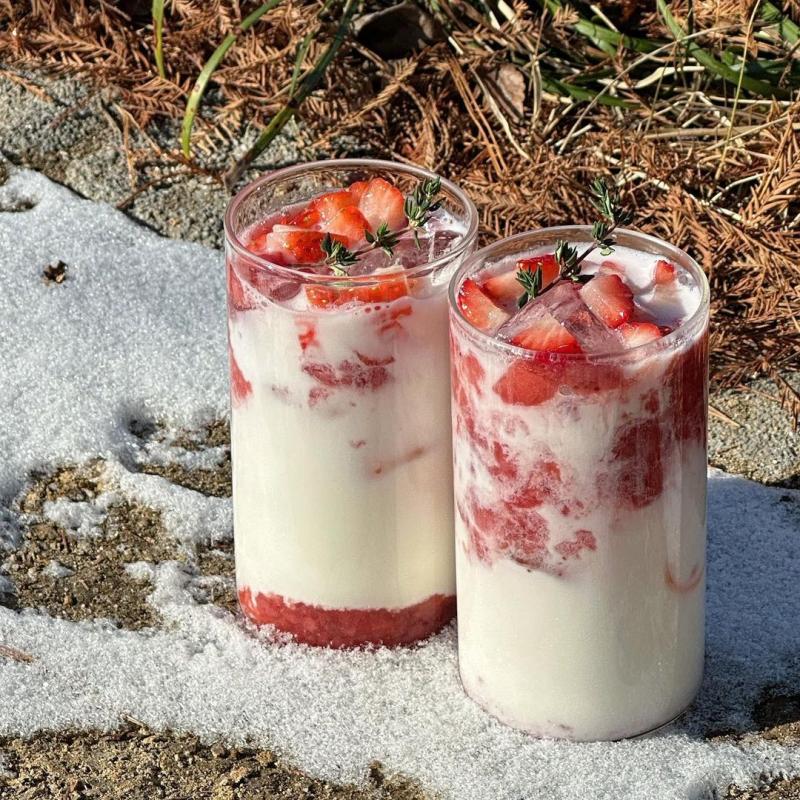 인트라던을 오픈하고 첫 딸기라떼네요. 비정제설탕으로 담은 딸기청에 생딸기까지🍓 많관부!🙋🏻♂️