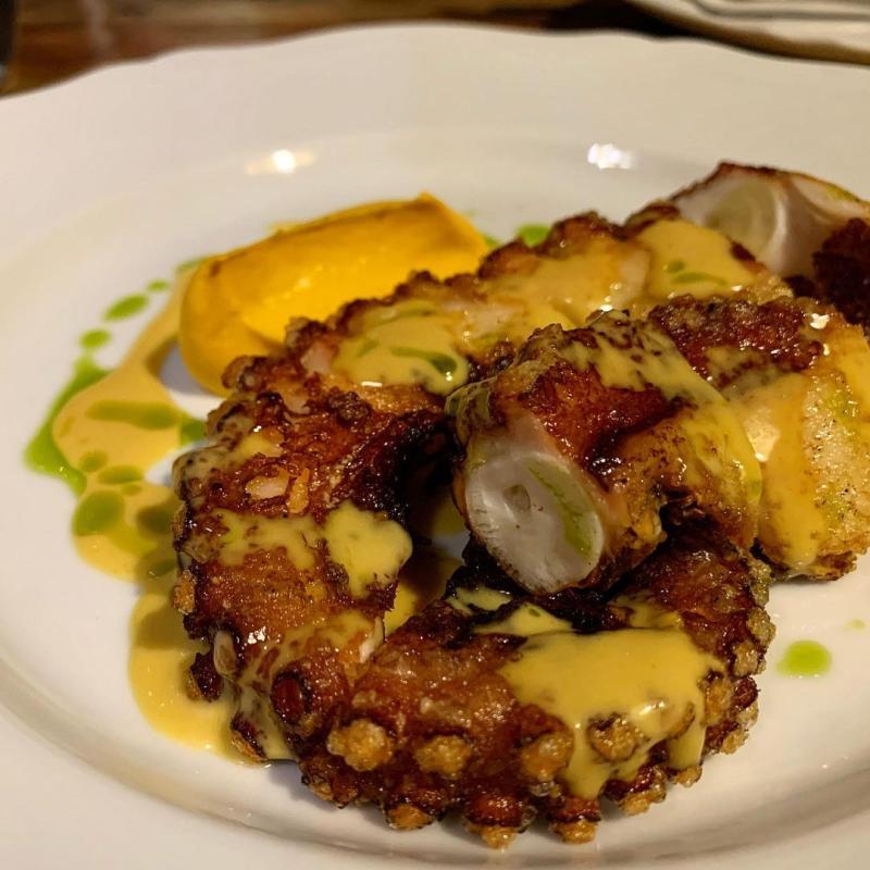 식전요리에서 문어, 양송이 버섯의 식감과 맛이 훌륭하다.
