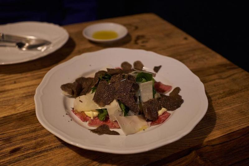 가득 올라간 carpacio di manzo는