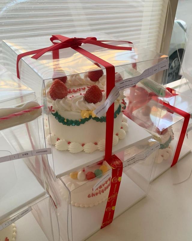 크리스마스 시즌 케이크는 투명박스 포장 후 크리스마스 리본이 묶인 쇼핑백과 함께 동봉됩니다 ❤️