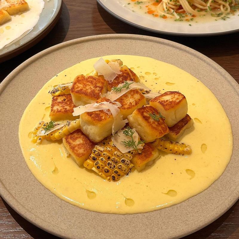 저 크림뇨끼덕후..약 반년만에 뇨끼맛집 알립니다✍🏻🤎시즌 초당옥수수뇨끼,감자뇨끼 둘 다 크림도 뇨끼도 너무 너무 맛있어요..🤤갠취로 초당옥수수의 달달한맛이 나는 크림이 넘 좋더라구요💛새우크럼블파스타도 오일파스타계에서 탑급으로 인상깊었고요, 시저샐러드 이렇게 듬뿍 큼지막하게 주는 것도 사랑이고 소스도 너무 맛있었어요🫶🏻디저트로 상틈달달한 망고아이스크림&그라니따까지 최고! 🥭🍨