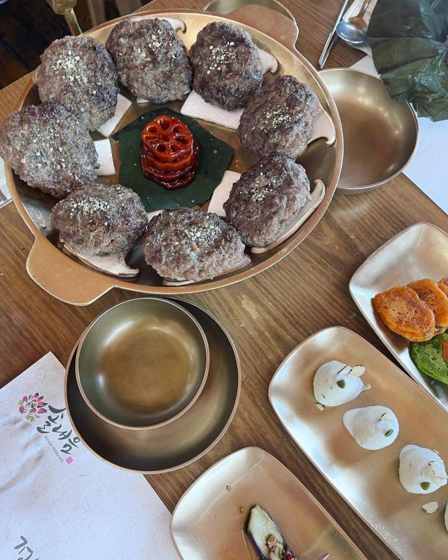 메뉴구성은 떡갈비,연잎밥,계절반찬10가지,된장찌개