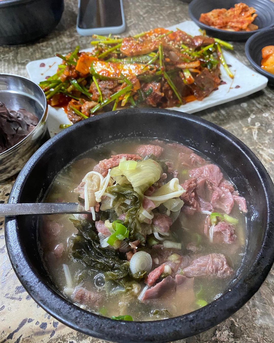 수원, 유치회관 📌 간밤에 몸이 허해서 남편과 수원까지 쏴볼까? 🔫 하며 유치회관에 다녀왔어요. 무엇보다 24시간이라서 좋았구요, 신선한 선지와 쫀득쫀득한 수육이 일품이었어요! 그리고 우거지가 잔뜩 들어있는 한우 해장국은 콜라겐덩어리라 매우 고소하고 국물이 깊었구요⚡️정말 좋았어요. 또 갑니다! (꿀팁: 선지와 우거지는 달라고하면 더 주십니다)