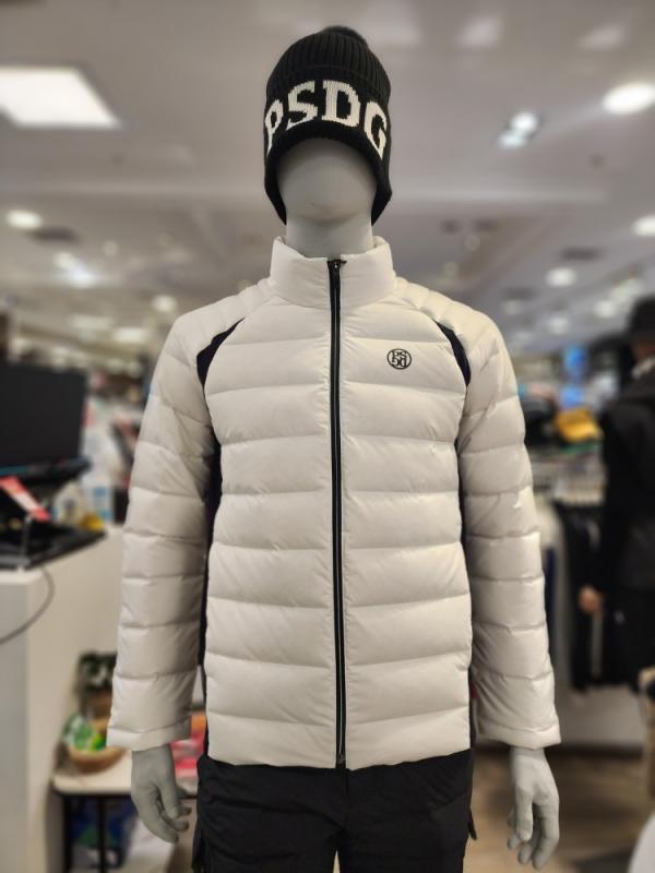 남자들은 덕다운 패딩바지와 비니모자.