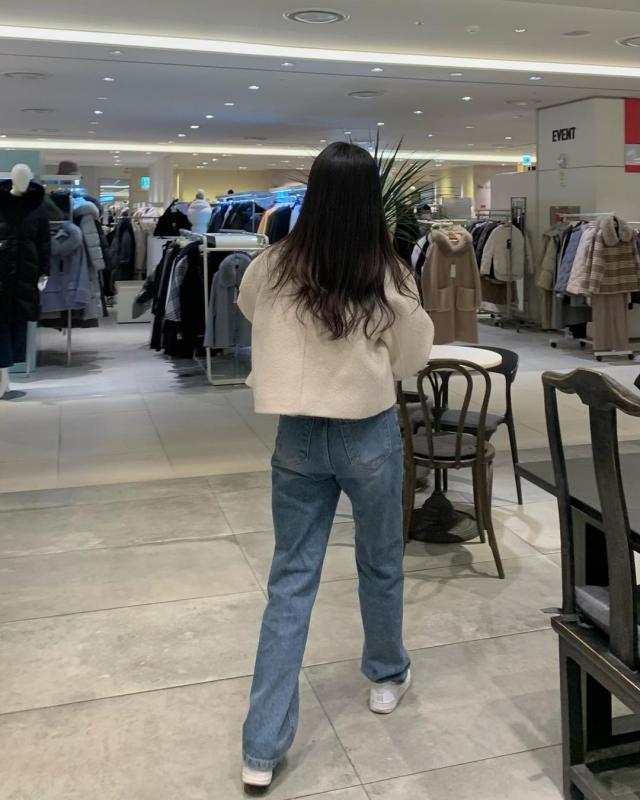 핏이 너모 예쁜 세미부츠컷데님 드디어 오늘 올라가용,,!💙 그리구 같이 입은 숏코트 지금 완전 베스트에여 희희✨