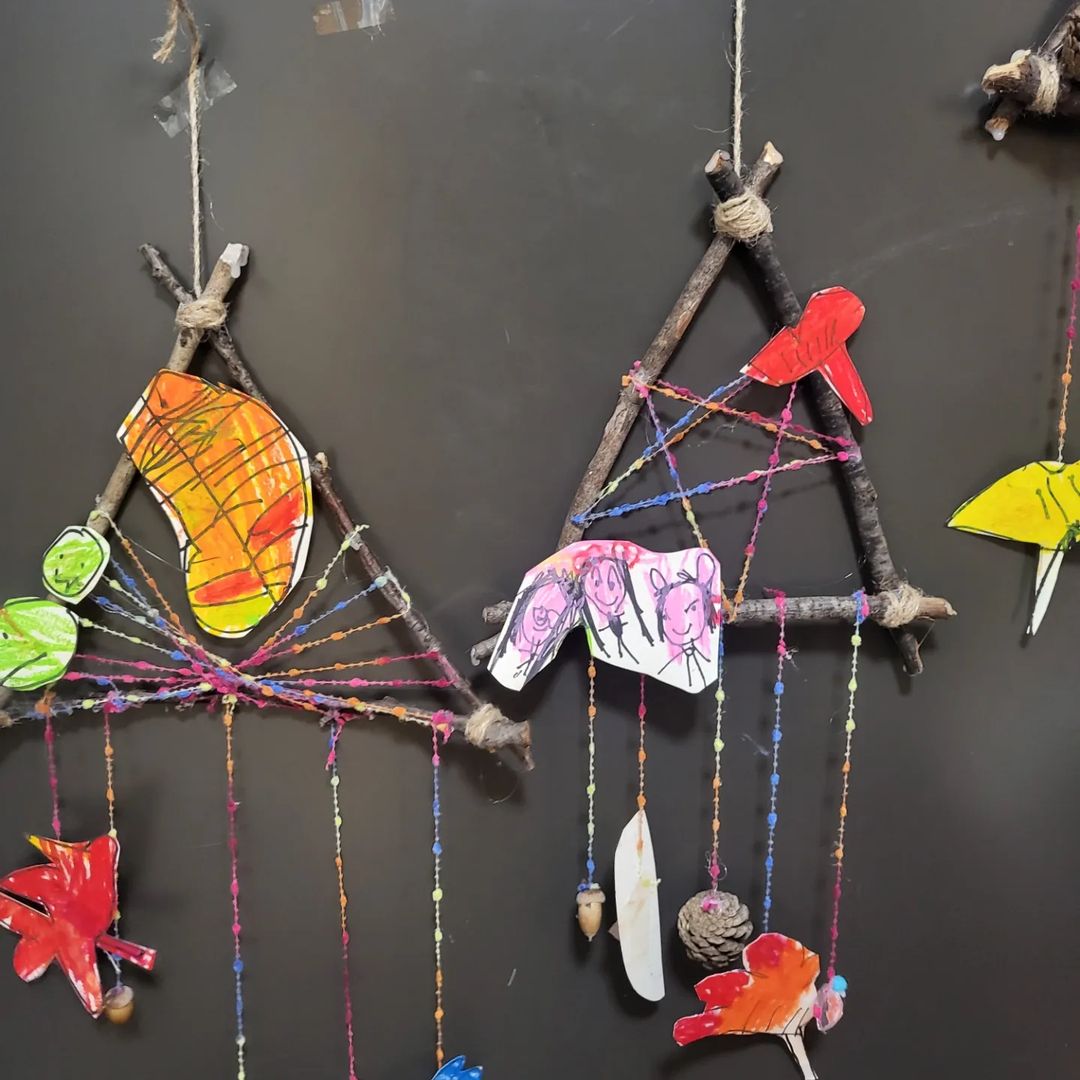 우리나라 단풍은 너무 아름다운것 같아요 다섯살 친구들 직접 주워온 낙엽 관찰후 드림캐쳐ㅋㅋ 꾸며보았어요